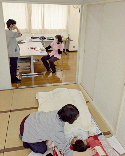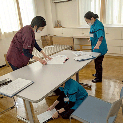 実際、訪問中に地震が起きたらどうする? という想定をもとに、シュミレーションを実施。